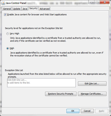 - Open the Java Control Panel and go to the Security tab.