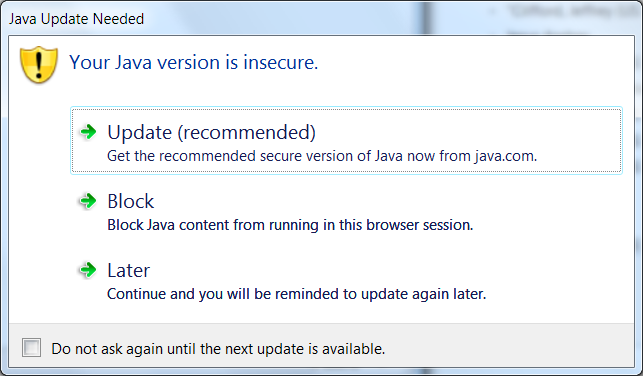 If you are permitted to update Java, we recommend choosing this option since the newer versions tend to be more secure.