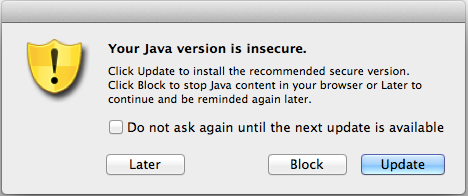 What do I do if I get a warning that my Java version is insecure?